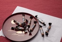 人差指程の大きさの細長い生地に黒生海苔を巻いた商品です。ご家族、友人達大勢で食べるのにお得な海苔巻です。